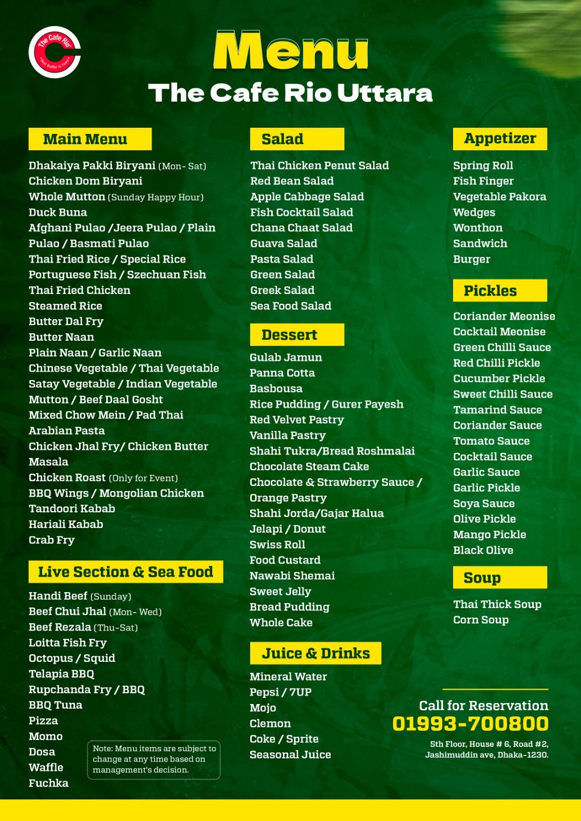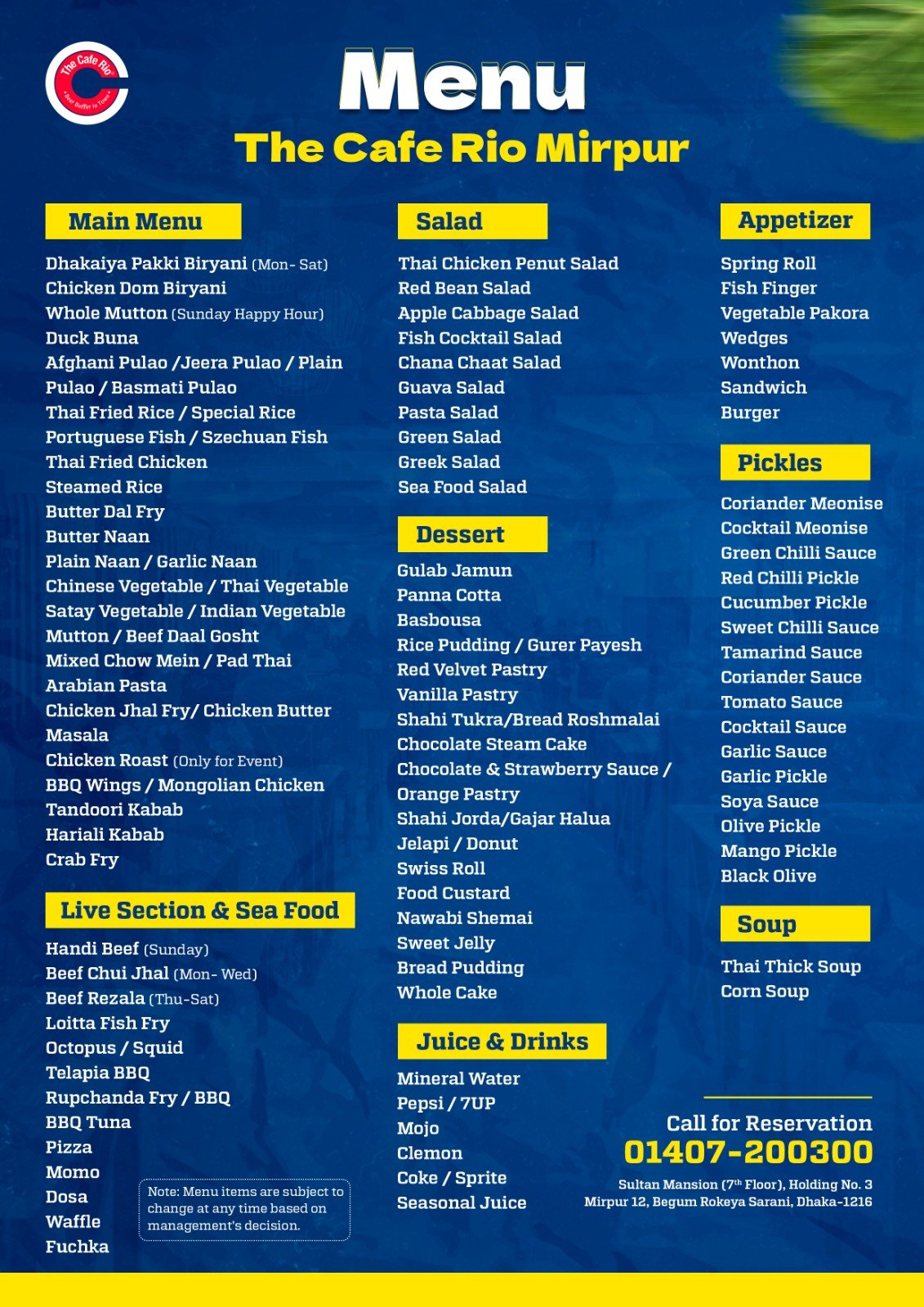 আমাদের সকল ব্রাঞ্চের মেনু